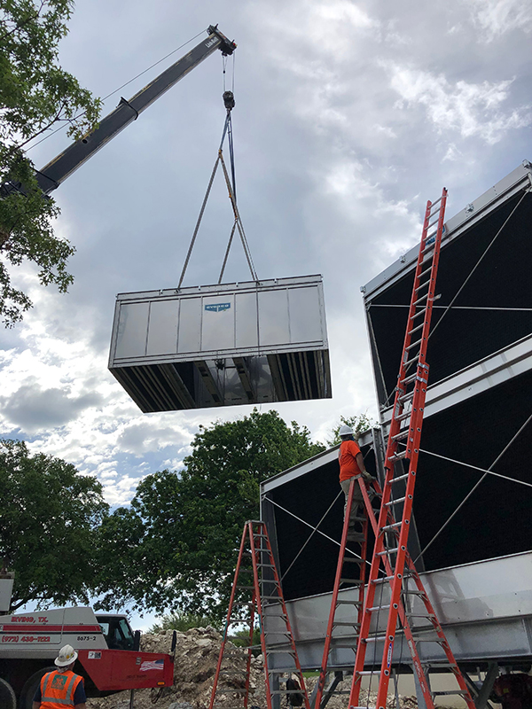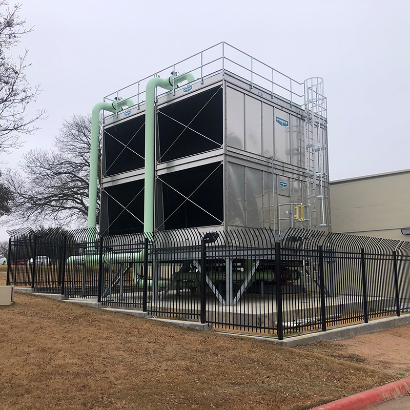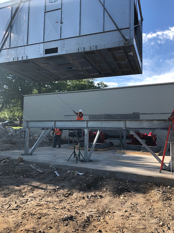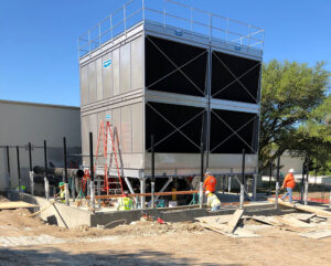 Infinity shares a decades-long relationship with Dallas College. At the Mountain View Campus, our team retrofitted the mechanical yard as a turnkey project encompassing many trades. Our scope consisted of the demolition and removal of 50+ year old towers and building the new cooling towers on site, tying them into the existing lines during the shutdown. In addition, a new scroll chiller with a refrigerant monitoring system, air handling and fan coil units, boiler, inline pumps, fans/hoods, tanks and HVAC ductwork, and underground piping were part of the scope. Lastly, our team performed the plumbing scope consisting of a domestic water system, drain, waste and vent, drain and natural gas piping, and a water heater.